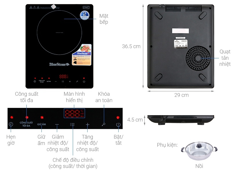 MÔ TẢ CHI TIẾT- BẾP TỪ CẢM ỨNG BLUESTONE ICB-6728 2000W (KÈM LẨU)