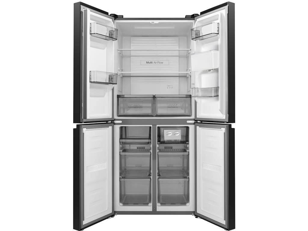 Hisense RQ559N4EBND sở hữu thiết kế nhiều cửa hiện đại, với bề mặt phẳng cao cấp, tạo nên sự tinh tế và hài hòa với mọi không gian bếp. Cửa tủ có thể mở góc 90°, thuận tiện cho những không gian hạn chế, ví dụ như đặt sát tường. Ngăn kéo sâu hơn và khay cửa siêu lớn XXL giúp chứa được nhiều thực phẩm và đồ dùng cồng kềnh, mang lại trải nghiệm sử dụng tiện lợi tối đa. Thiết kế phẳng không chỉ đẹp mắt mà còn giúp việc vệ sinh tủ trở nên dễ dàng hơn.